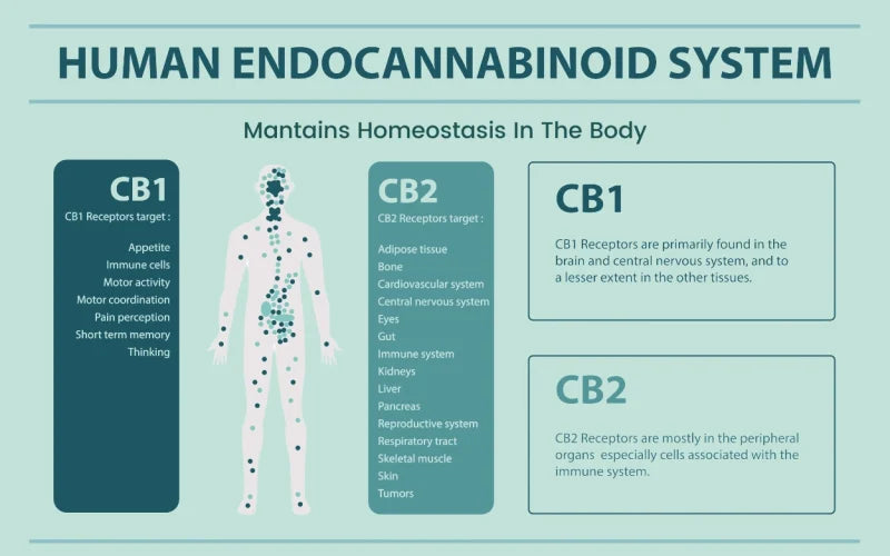 CBD (cannabidiol) interacts with the endocannabinoid system (ECS)—a complex cell-signaling system in your body that helps regulate essential functions like mood, pain, sleep, appetite, immune response, and keeps you body in a balanced state called homeostasis.